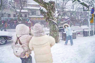 纷纷扬扬的雪花飘落在牯岭山城,给大地、树木、房屋披上了洁白的“银装”。见到眼前美不胜收的雪景,萍乡游客吴雨晴十分开心地说:“下雪的庐山宛如人间仙境,到处都是银装素裹,随便一拍都是美景。”雪舞牯岭山城间,牯岭街、街心公园的雪地上,处处荡漾着游客欢快的笑声,大家摆出各种姿势拍美照,有的开心地拉起了滑雪板,有的哼唱起了雪之歌,甚至有的在雪地上撒欢打滚,仿佛要紧紧抓住冬天的尾巴,在春寒料峭的二月天,酣畅淋漓地释放冬天里被抑制的狂欢劲。