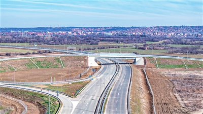 这是2月22日在塞尔维亚拍摄的中企承建的“多瑙走廊”快速路项目路段(无人机照片)。