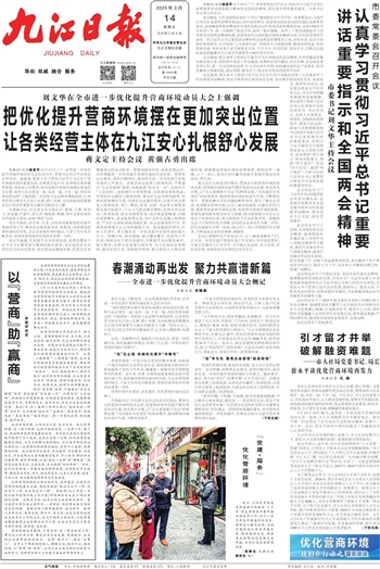 把优化提升营商环境摆在更加突出位置 让各类经营主体在九江安心扎根舒心发展