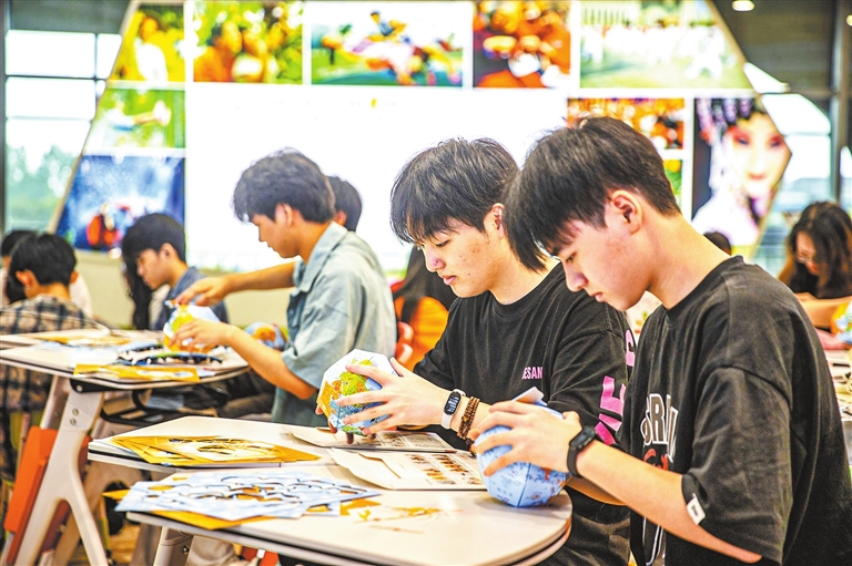 近日,百余名大学生走进位于共青城市的江西生态文明展示馆,通过“看、听、学、做”四维教学模式,沉浸式体验生态保护,深化生态保护意识。同学们跟随讲解员的脚步,沿着山、水、林、田、湖、草、生物宝库等主题展线有序参观,通过图文展陈、多媒体互动、沙盘模型等形式,了解鄱阳湖独特的自然景观、候鸟迁徙、生物多样性等生态画卷;老师结合展馆内容,以“筑牢生态安全屏障”为主题,为同学们上了一堂“生态安全”实践课;在“创意纸地球”手工制作环节,青年学子根据说明书,将一块块标注着不同地理标识的零散模块拼接成一个立体的地球模型,用自己的方式表达对地球家园的热爱。
