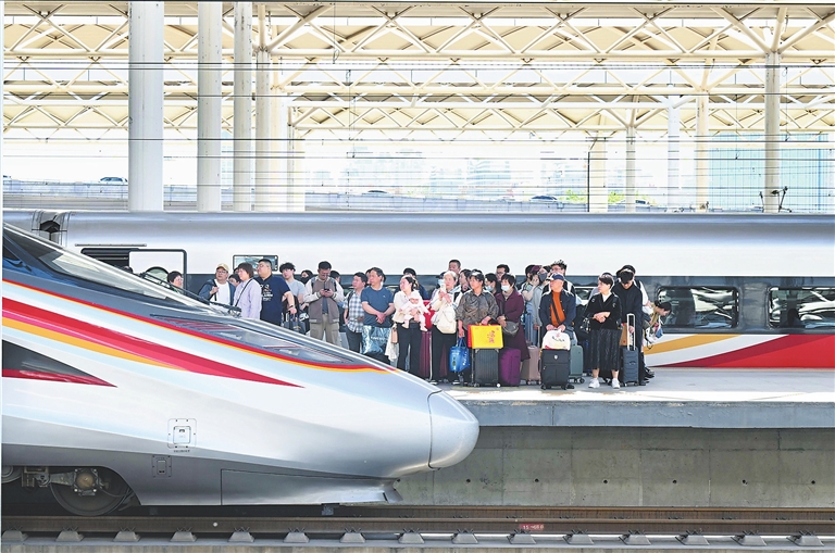 记者从中国国家铁路集团有限公司获悉,铁路五一假期运输4月29日全面启动,自4月29日至5月6日,为期8天,全国铁路预计发送旅客1.44亿人次、同比增长4.9%,客流最高峰为5月1日。(新华社发 陈其保 摄)