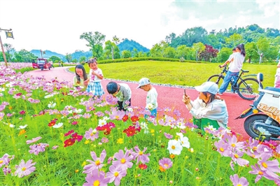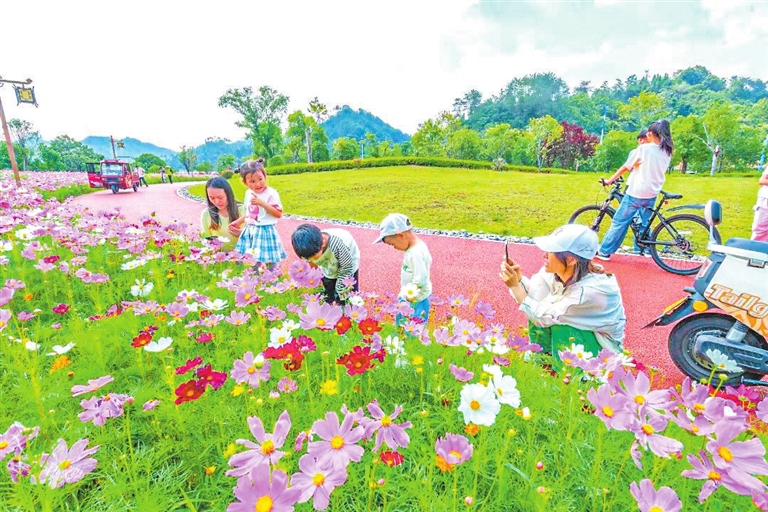 武宁县西海湾景区云水湾公园,绚烂的格桑花海吸引市民纷至沓来。据了解,公园花海绵延5万平方米,以格桑花、硫华菊为主,是武宁县城面积最大的花海,如同一幅色彩缤纷的油画,吸引游客在花间穿行,感受自然的美好。(余慧琳 摄)