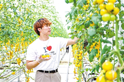 日前,大连外国语大学的留学生代表团来到濂溪区参观现代农业科技示范产业园,深入体验中国农业的发展魅力。在园区内,留学生们饶有兴趣地观察番茄等作物的现代化种植模式,深入了解中国传统农耕文化的深厚底蕴与现代科技的融合创新。(魏贞子 本报记者 张 驰 摄 )