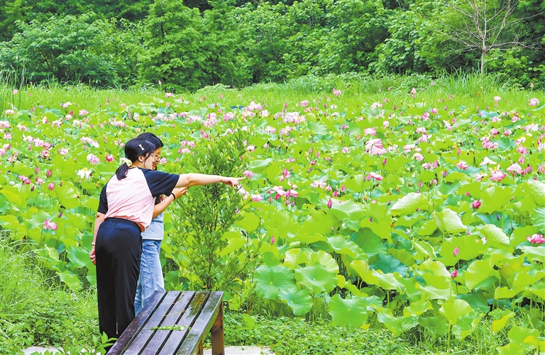 6月13日,湖口县城山镇莲荷种植基地繁花似锦,吸引游客纷纷前来打卡。近年来,当地充分发挥资源优势,以发展莲子种植为支柱产业,延伸产业链条、提升产业附加值,带动百姓致富增收,实现经济生态双丰收。(张 玉 摄) |