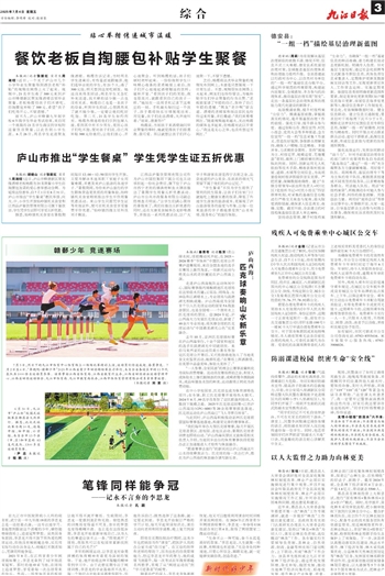 庐山市推出“学生餐桌” 学生凭学生证五折优惠