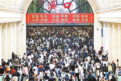 10月1日,在湖北省武汉市汉口火车站,旅客进站乘车。
