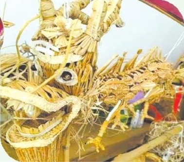 在传习所内,老师们被国家级非遗传承人喻远莉的草编作品深深吸引。错落陈列的草龙作品,既有气势恢宏的大型草龙,也有精巧灵动的小型龙饰。作品龙鳞纹路细腻逼真,龙骨结构立体分明,充分展现了精湛的传统手工技艺。喻远莉在坚守传统的同时不断创新,将本地水域常见的鱼、虾、蟹等生动形象融入创作,使草编艺术既充满趣味,又紧密贴近生活,赋予了传统技艺新的活力。