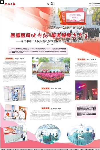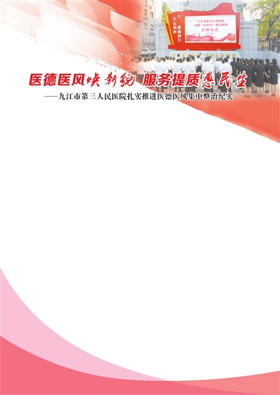 巍巍庐山,见证医者仁心;滔滔长江,奔涌为民情怀。在赣北这片红色热土上,九江市第三人民医院正经历一场由内而外的深刻变革。自医德医风集中整治工作开展以来,医院坚持系统施治,以创建“心连心”暖心医院为抓手,着力改善就医环境、提升服务水平、减轻群众负担。全院职工精神面貌焕然一新,干事创业的精气神日益提振,切实将整治成效转化为惠民成果,群众就医的获得感、幸福感、安全感显著增强。
