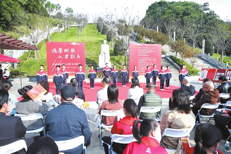 近日,“德馨珩韵 今有新声——纪念许德珩诞辰135周年诗文诵读会”在濂溪区南山公园举行。来自九江市100余名师生,怀着无比崇敬的心情,齐聚在许德珩先生雕像前的广场上,用声音穿越时空,在诗文的韵律中,重温许德珩先生的家国情怀、赤子之心和铮铮誓言。
