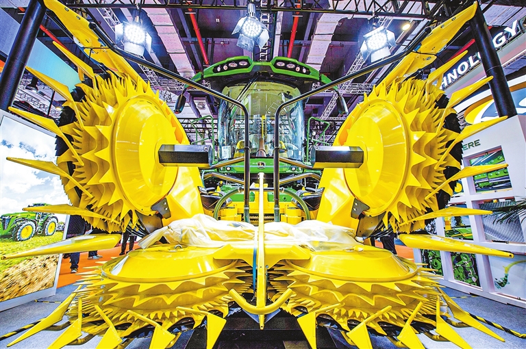 十一月六日,在第八届进博会技术装备展区拍摄的自走式青贮收获机。(新华社记者 丁 赫 摄)