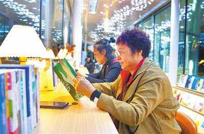 近日,庐山市牯岭镇,夜幕下“庐山书房”里灯光璀璨,不少游客在这里阅读书籍。