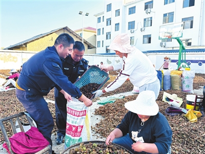 目前正值油茶的丰收季节,横路乡由于地理位置特殊,大部分群众家中没有足够大的场地晒油茶籽。近年来,横路乡派出所想群众所想,急群众所急,让群众在派出所后院晒油茶籽。这一暖心的举措,得到广大群众的好评。(柯于生 戴英琴 摄)