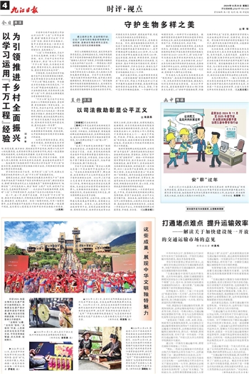 生态兴则文明兴。一幅人与自然和谐共生的生动画卷在中华大地徐徐铺展,必能为实现中国式现代化提供有力支撑,为共建一个清洁美丽的世界、打造人与自然生命共同体贡献更多力量。(《人民日报》)