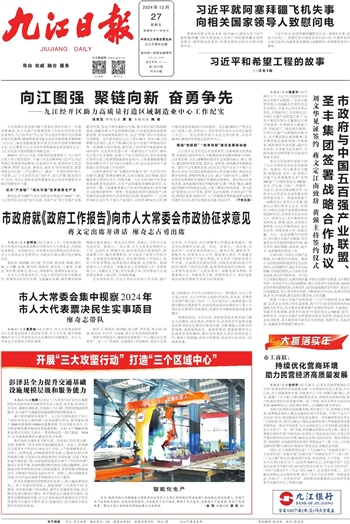 2024年,在九江市委、市政府的坚强领导下,九江经开区深入学习贯彻党的二十届三中全会精神和习近平总书记考察江西重要讲话精神,认真落实中央、省委经济工作会议精神,聚焦“走在前、勇争先、善作为”的目标要求,紧紧围绕全市打造“三个区域中心”、建设“一个美好家园”的工作部署,以“三大攻坚行动”为抓手,深入开展“强攻项目年”活动,为九江高标准高质量建设长江经济带重要节点城市贡献经开力量。