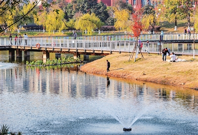 元旦当天,十里河生态公园景区内游人如织,人们沐浴在温暖的阳光中,感受假期生活的美好。很多游客都是“拖家带口”而来,其中有不少老人和孩子。在景区游玩时,绝大多数游客都能做到爱护环境、遵守秩序,但仍有个别游客文明出游意识也“放了假”,有的小孩趁家长不注意,独自跑到河边玩水,家长发现后有的会及时将其劝回,有的则是听之任之。景区在沿河许多地方都设置了警示牌,提醒大家“水深危险,远离河道。”