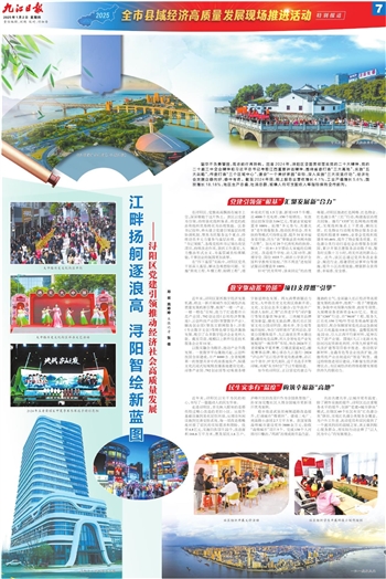 以数实融合为路径,推动产业升级发展。一批数字平台蓬勃兴起,云创科技园全面建成,日产8000方、全省规模第一的智慧共享中药房落地投产,娱猫文化沉浸式短视频直播基地建设完成,浔鲁产业园、792创业园等12栋商务楼宇彰显特色发展。两大消费商圈活力迸发,大中路历史文化街区焕新开街,文化、文创业态多元融合;信华浪井广场游人如织,汇聚“江西老字号”浔庐餐厅等知名餐饮70余家。三块城市品牌更加彰显,擦亮文旅品牌,依托长江国家文化公园浔阳段、烟水亭、李公堤等城市地标,举办“浔阳喜市”系列活动,甘棠公园整体提升、九江海底世界火爆出圈;擦亮电竞品牌,列入全省电竞产业发展规划“一核四带”布局,举办2024年王者荣耀K甲夏季赛,引爆流量超6亿;擦亮赛事品牌,精心承办九江银行·2024“庐山杯”长江经济带龙舟邀请赛,沿江11个省市、37支代表队、近千名选手齐聚浔城,央视“东方时空”予以专题报道。