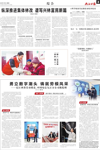 作为一名深耕一线的共产党员,在陈院明心中,党的初心使命绝非空洞的口号,而是要实实在在地付诸行动。他依托中国电信丰富的云网资源、海量数据和应用场景优势,大力开展“劳模助企行”,积极构建产业数字化发展新模式。在他的带领下,团队以信息化、数字化、智慧化为引擎,全力赋能九江市打造“三个区域中心”、建设“一个美好家园”,为九江的传统产业转型升级注入强劲动力。