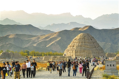 2019年10月2日,游客在宁夏银川市西夏陵遗址区参观。(新华社记者 冯开华 摄)
