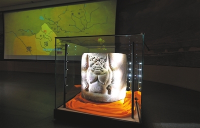 这是在宁夏博物馆展出的石雕力士志文支座(2024年11月26日摄)。