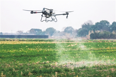 2月25日,在嘉兴市南湖区凤桥镇星火村,种植户操作植保无人机实施杂草防治作业。眼下,在浙江省嘉兴市南湖区的多个农场内,无人机、自动喷洒机、自动旋耕机等农业自动化设备在进行翻地、播种、灌溉等多项任务,助力春耕春种。(新华社记者 徐 昱 摄)