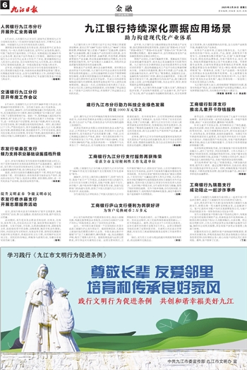会议指出,2024年,分行深刻把握金融工作的政治性、人民性,扎实推进党纪学习教育,做好巡察整改“后半篇文章”,较好实现了主要经营管理目标。新的一年,要积极融入地区经济发展格局,将“存款立行”这一经营理念扎根于工作的每一个细节,进一步优化客户分层管理,夯实客户资源;树牢大安全观,坚守安全底线,努力构建全面风险防控体系。同时,重点做好以下工作:严管治党治行,筑牢金融根基;融入九江大局,赋能地方发展;提质增效并重,推动量质齐升;守牢安全底线,强化风控合规;优化分层管理,夯实客户资源;强化组织建设,提升风险应对能力;深耕党建沃土,赋能高质量发展。(段毅君)