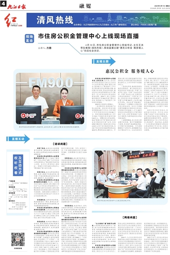 4月30日,市住房公积金管理中心党组书记、主任王洪带队做客《清风热线》,围绕直播主题“惠民公积金 服务暖人心”回应社会关切。