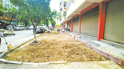 改造中的渊明社区,每一天都有新变化。施工人员已拆除破损、坑洼的人行道,新的透水砖铺设工作正在推进。施工人员各司其职,有的搬运透水砖,汗水湿透了他们的工作服;有的仔细铺设砖块,用橡胶锤敲打着,确保每一块砖都平整稳固;还有的操作着挖掘机等大型设备,进行地面的平整和清理工作。