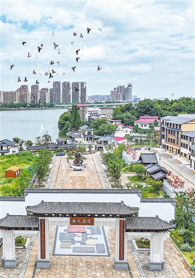 7月10日,位于濂溪区白水湖南岸半岛的乐天胜境项目现场一派古色古香的景象。截至目前,项目主体工程基本完成,长庆阁室内装修、廖家咀生态提升工程、沿湖景观优化等部分正在持续推进,预计10月全面建成开放。该项目以唐代诗人白居易(字乐天)与江州(今九江)的历史渊源为核心,打造集文化体验、休闲观光、商业消费于一体的文旅综合体,总占地面积约18万平方米,涵盖临湖餐饮、夜演灯光秀、九江长江博物馆、山林野趣露营地、水景雕塑、亲水曲桥、临湖民宿、生态停车场、青创基地等多个区块。(本报记者 刘 家 摄)