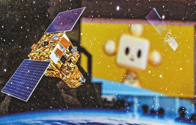 7月16日,在先进制造链展区山东嘉航电子信息技术有限公司展位,产品图片与反射的链博会吉祥物“链氪”相映成趣。(新华社记者 陈 朔 摄)
