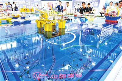 7月16日在清洁能源链展区拍摄的中国海油产业集群数智沙盘。(新华社记者 金立旺 摄)