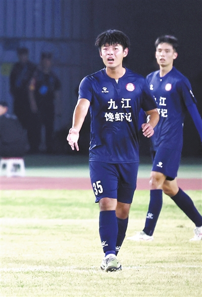 7月26日晚,九江队用3粒进球摧毁了景德镇队的“城池”,赢得比赛。赛后,中场球员李启超说:“我的任务就是组织进攻,为队友输送‘炮弹’,只要他们进球,我就开心。”