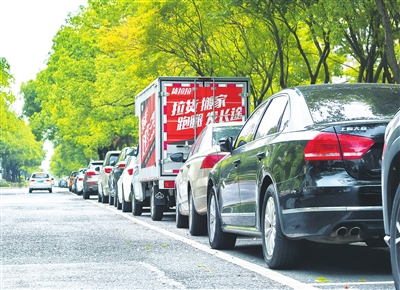 8月6日,市区新湖中路,机动车整齐停放在划定车位内,车头朝向一致。近年来,我市许多车主自觉做到将车辆文明停放,街头乱停乱放现象显著减少。这一变化折射出文明交通理念已融入市民日常,成为城市文明新风尚。(本报记者 张 驰 摄)