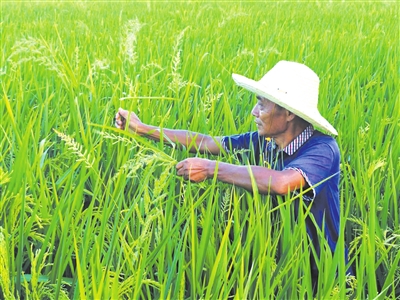 黎神初在田间抽稗草。