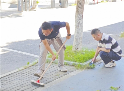 近日,濂溪区姑塘镇组织机关党员和姑塘社区工作人员开展“清扫解民忧,党员我先行”主题党日活动。党员干部们化身志愿者,对路边青苔进行全面清理,切实排除居民出行安全隐患,用实际行动践行“我为群众办实事”的承诺。(李偌璇 摄)