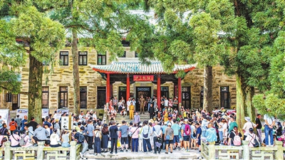 8月3日,庐山风景区,游客们在庐山抗战博物馆观看抗战主题情景剧。今年暑期,游客在庐山休闲避暑的同时,可以通过观看情景剧、展览等形式,追忆庐山人民抗击日本侵略者、捍卫民族尊严的历史。(特约记者 韩俊烜 摄)
