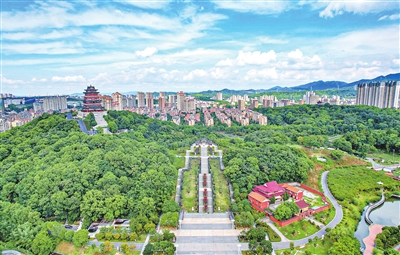 9月10日,俯瞰濂溪区一隅,蓝天白云、绿树青山、楼宇林立,一幅美丽都市画卷映入眼帘。近年来,我市始终坚持生态优先、绿色发展理念,奋力开创生态文明建设新局面。(本报记者 张 驰 摄)