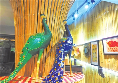 竹编孔雀栩栩如生。