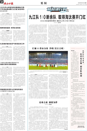 终场哨声响起,记分牌定格在1∶0。当晚,市体育中心体育场涌入30156名球迷,再度刷新了九江队主场上座纪录。根据赣超赛制,淘汰赛阶段采取主客场两回合制。9月28日,两队将移师新余队主场,进行次回合较量。让我们继续为九江队喝彩,也期待他们在新余的客场继续高歌猛进。淘汰赛的征程才刚刚开启,属于九江的荣耀,仍在路上!