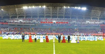 本报讯(记者张新红)9月21日晚,一场融合美景与深情的演出在市体育中心体育场拉开帷幕。