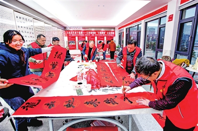 2024年12月30日,都昌县新时代文明实践促进中心联合县文学艺术界联合会主办的2025年都昌县“我们的节日·元旦”暨义写春联新时代文明实践活动在县新时代文明实践中心展开。红红的对联,浓浓的墨香,数十名书法志愿者现场挥毫泼墨,字字都蕴含着满满的新春祝福。