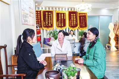 1月2日,在市区一家政公司内,几名家政服务人员正在与雇主进行面谈。记者了解到,随着春节临近,不少家庭开始预约“年节前后”家政保姆服务,家政市场也迎来了需求量骤增的“年节模式”。为满足市场需求,各家政公司也加大了招聘和培训力度,进一步缓解“用工荒”。(本报记者 杨罗军 摄)