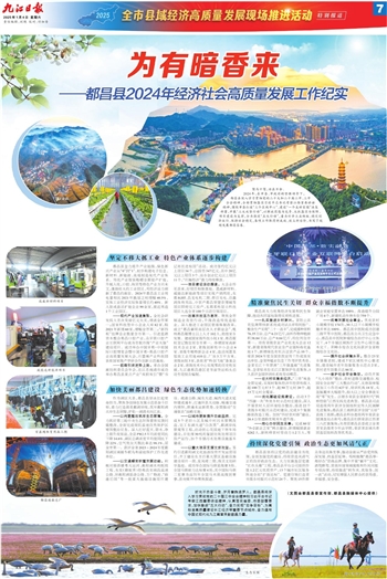 ——以问题整改筑牢生态屏障。全力抓好第三轮中央生态环保督察反馈问题整改,全面完成南矶湿地自然保护区矮围整治任务。深入打好蓝天、碧水、净土提升攻坚战,全县PM2.5年均浓度同比下降14.6%、湖区总磷浓度平均值同比下降22%,空气优良天数比率达98.1%,居全市第一。获评全省2023~2024年度鄱阳湖区域越冬候鸟和湿地保护工作先进单位。
