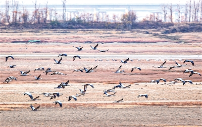 近日,在共青城市南湖湿地,成群结队的候鸟或在空中翱翔、或在水中嬉戏、或在芦苇丛中觅食,呈现出一派生机勃勃、鸟集鳞萃的迷人景象。候鸟们时而舞动双翅、时而啄食鱼虾,优美的身姿、悠然自得的身影与湿地的良好生态相得益彰,成为冬日里一道灵动的风景线。(潘 成 本报记者 刘 家 摄)