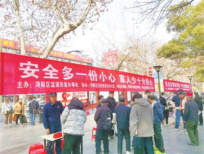春节将至,为提高辖区居民的安全意识,防范各类安全风险,确保人民群众生命财产安全和社会稳定和谐,1月22日,浔阳区湓浦街道在烟水亭广场开展春节前安全生产宣传活动。活动现场,工作人员通过发放宣传手册、摆放宣传展板等形式,真正达到了把安全知识向老百姓有效输送的目的,让安全防范理念深入人心。(本报记者 蔡 钦 摄)