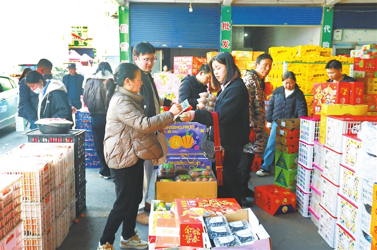 作为年货的重要组成部分,水果的供应和销售开启了春节旺销模式。日前,记者在九江果品批发交易大市场看到,市场内货足价美、购销两旺,各式各样的水果琳琅满目,不少市民正在选购新鲜的水果,现场一片热闹景象。