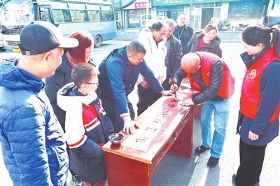 “一帆风顺年年好,万事如意步步高”“张灯结彩迎新春,欢天喜地度佳节”……1月21日,我市书法爱好者在九江长途汽车站长虹驿站开展“写春联、迎新春、送祝福”志愿服务活动。一副副寓意美好的春联,不仅营造出欢乐祥和的节日氛围,也向广大市民和过往旅客送去了诚挚的新春祝福。