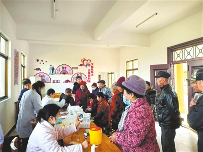 近日,彭泽县太泊湖农业综合开发区组织卫生院医护人员前往白山村开展迎新年健康义诊活动,依次为村民量血压、测血糖,将优质的医疗服务和实用的健康知识送到村民“家门口”。(涂美玲 摄)