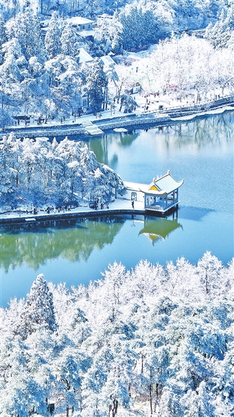 春雪如玉见匡庐,冬雾若纱笼鄱湖。2月17日,庐山风景区迎来大范围降雪,牯岭山城被皑皑白雪覆盖,树木、屋顶银装素裹,宛如童话世界。游客纷至沓来,在雪地中拍照、嬉戏,感受“瑞雪从天降,喜悦心中来”的独特体验。(本报记者 程 鹏 摄)