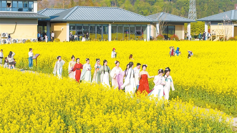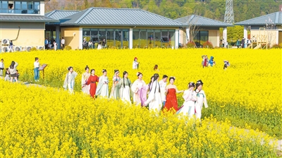 近日,庐山市温泉镇通书院村举办的“春田花花游园会”吸引了许多游客前来打卡游玩。走进乡村呼吸新鲜空气、体验田间野趣、品尝农家美食成为这个春天最惬意的休闲方式。(特约记者 韩俊烜 摄)
