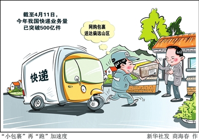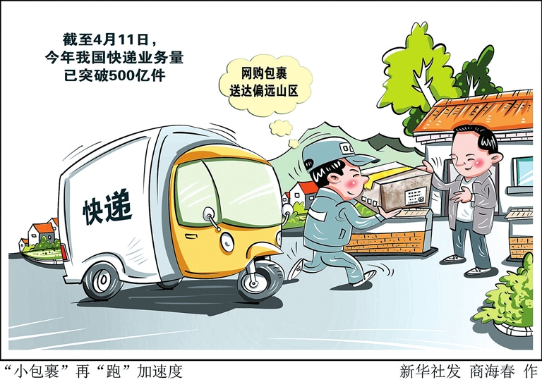 国家邮政局监测数据显示,截至4月11日,今年我国快递业务量已突破500亿件,比2024年提前18天。网购包裹送达偏远山区,农产品“走”出大山深处……如今,全国3000多个边境自然村全部通邮,超过23万处快递服务营业网点、超过22万条快递服务网路,构成了一张覆盖全国、深入乡村、通达全球的服务网络,支持着我国快递迈上新平台。 (新华社发 商海春 作)